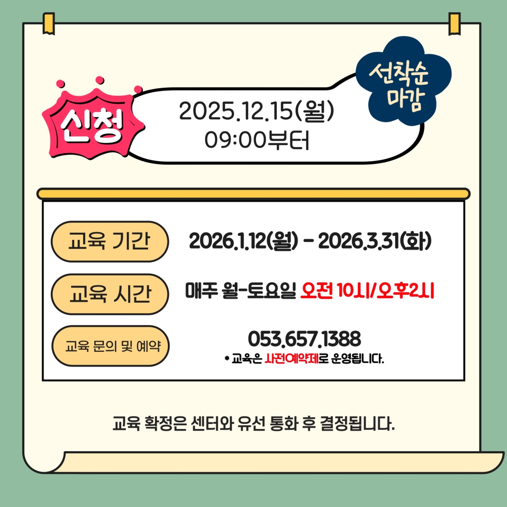 2025년 대구아름청소년성문화센터 4분기 체험관 교육 신청